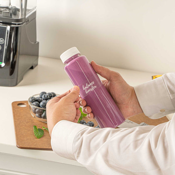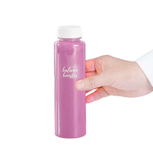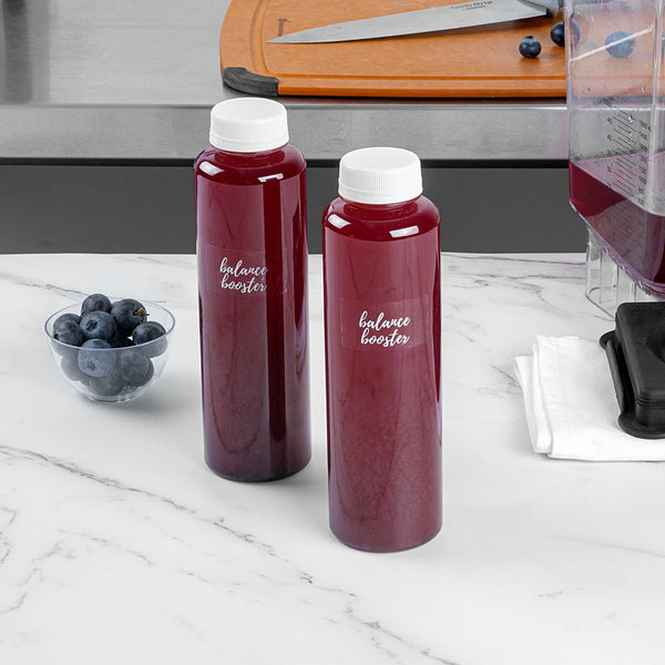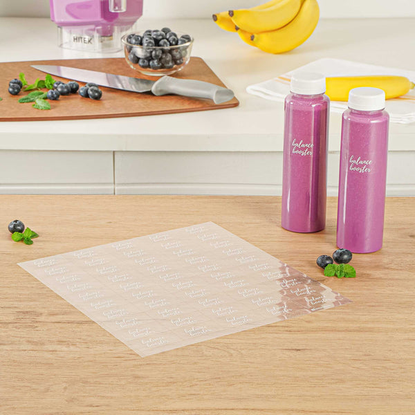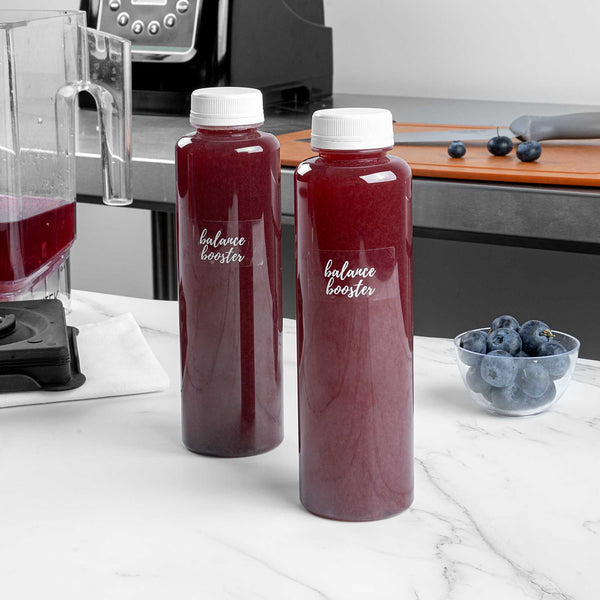 Allow customers to easily find nutritious juices in refrigerator cases with our Label Tek Plastic Balance Booster Labels. These juice bottle labels have a water-resistant design that is durable and built to hold up to condensation, which prevents them from peeling off chilled juices. Each fruit juice label reads "BALANCE BOOSTER" in a white cursive font, creating an eye-catching look while preventing from mixing up to go orders at your juice bar, restaurant, or concession stand. Featuring a clear background, these juice bottle stickers create a seamless look on juice bottles and offer guests a full view of your colorful juices. For a mess-free way to transport cold-pressed juices for take out and delivery services, pair these drink labels with our tamper-evident juice bottles and drink pouches. Browse our collection of water-resistant juice labels to organize bottled juices and prevent customers from making unnecessary contact with other bottles. Measuring 2 inches long by 1 inch wide, these balance booster labels come in a sheet. Sold in a 100 count box.