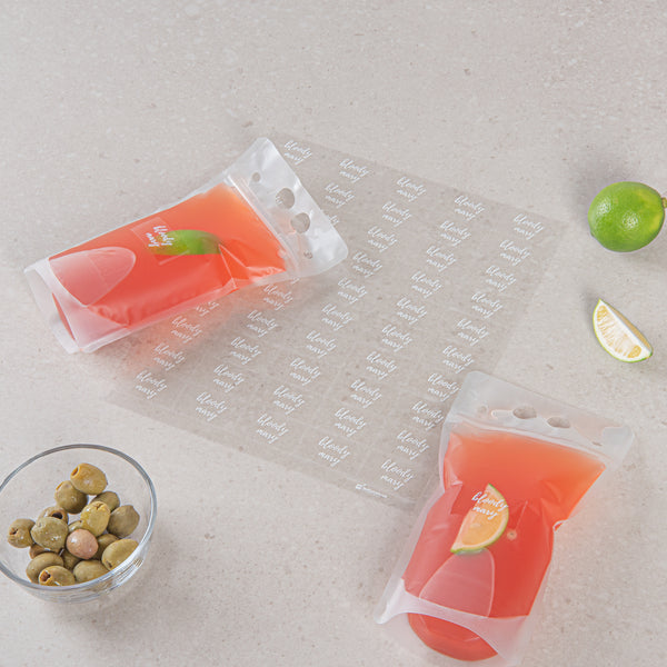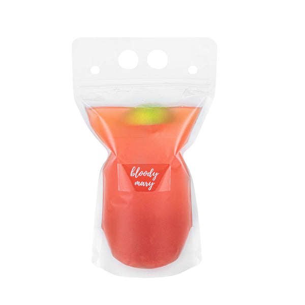 Label Bloody Marys for take out and delivery services using our Label Tek Plastic Bloody Mary Labels. With a water-resistant construction, these Bloody Mary labels are built to hold up to condensation which prevents them from peeling off or smudging. Reading "BLOODY MARY" in cursive, these drink labels allow you to organize prepackaged Bloody Marys in refrigerators to eliminate the guesswork for servers. Featuring a clear background with white font, these drink labels provide a seamless look on juice bottles while making it easy to distinguish prepackaged Bloody Marys from other beverages. Plus, they create a stylish look to drink orders which eliminates the need for customized stickers. These cocktail labels come in a sheet, allowing you to easily label Bloody Marys at your bar, restaurant, or catered event. Pair these cocktail labels with our collection of tamper-evident juice bottles and drink pouches to securely seal Bloody Marys for transport. These rectangle cocktail stickers are perfect for creating a cohesive look and increasing order accuracy at your foodservice establishment. Each cocktail label measures 2 inches long by 1-inch wide. Shipped in a 100 count box. Drink pouches and juice bottles sold separately. Browse our selection of water-resistant drink labels to find the perfect packaging solution for your drink orders.