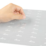 Add a cheerful touch to beverages using our Label Tek Plastic Cheers Labels. Crafted with a water-resistant design, these drink stickers expertly resist condensation from chilled bottles and won't peel off easily. Great for restaurants, bars, and cafes, these beverage stickers have a clear background that adds style to drink presentations. These food stickers include a white cursive font that reads "Cheers" so guests can quickly find their desired drink kits while minimizing direct contact with other bottles or containers. The strong adhesive back of these drink stickers expertly sticks onto all kinds of surfaces. These beverage stickers arrive in a sheet to streamline your employee's packaging process. These food stickers measure 2 inches in length by 1 inch in width. Shipped in a 100 count box. Browse our selection of water-resistant labels to find the perfect packaging solution for your take out orders.