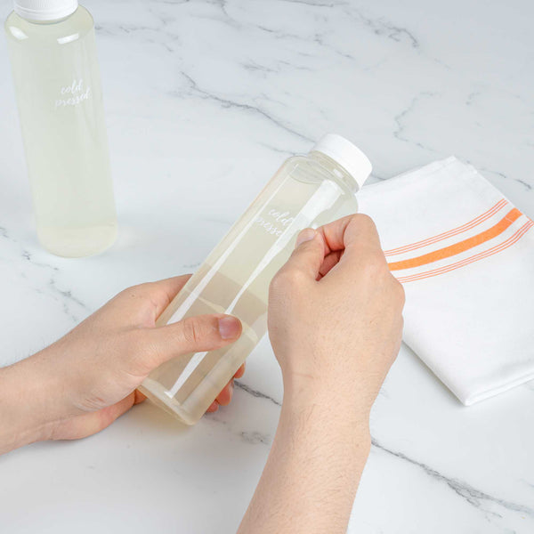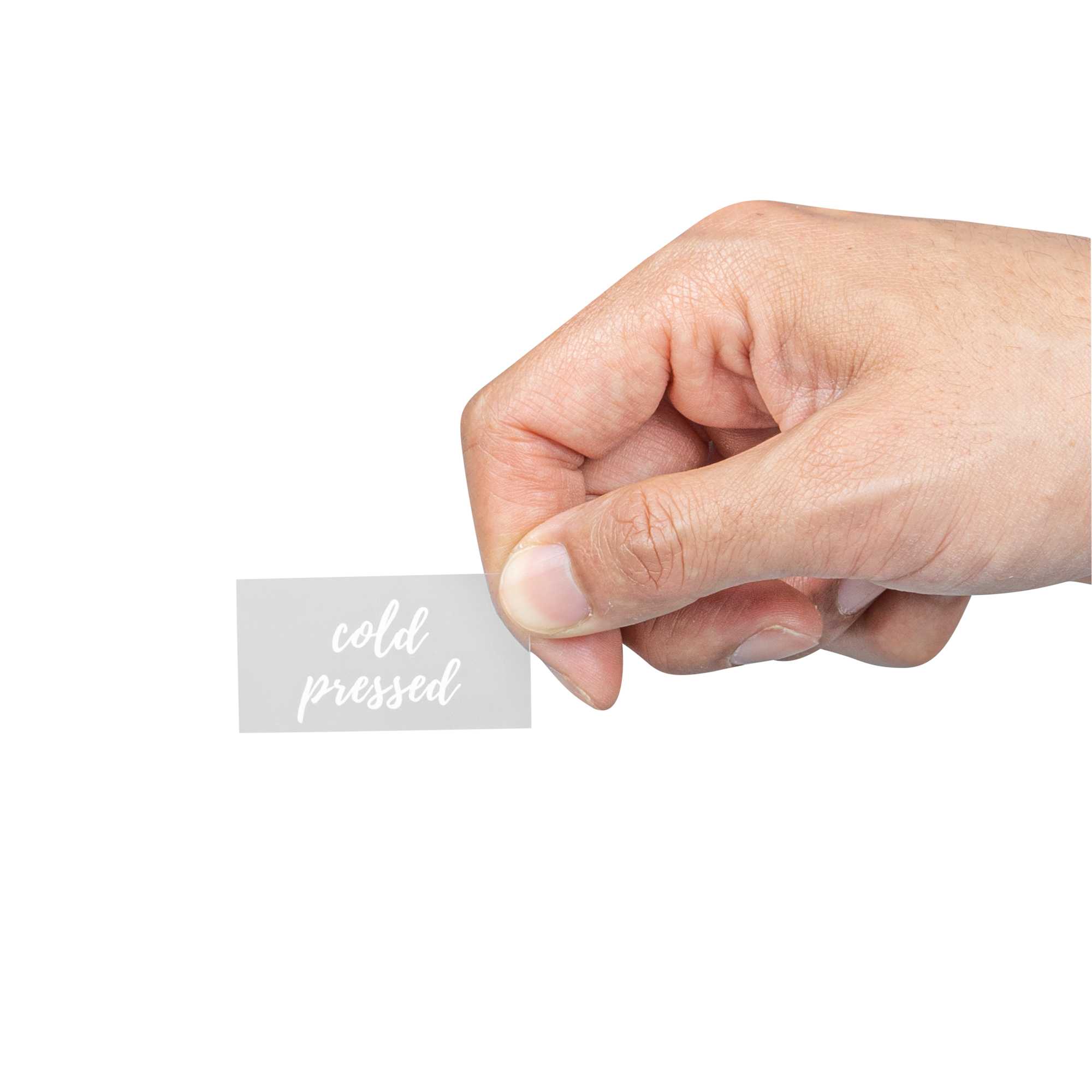 Bottle up your cold-pressed juices and label them with our Label Tek Plastic Cold Pressed Labels. With a water-resistant design, these beverage labels hold up to condensation which provides you with a convenient way to label fruit juices and store them in refrigerators without peeling off. Each juice pouch label reads "cold pressed" in a white cursive font for a chic and trendy look to easily distinguish juices from other drinks. These fruit juice stickers have a clear background to create a seamless look and eliminate the need for personalized labels. Great for labeling cold-pressed juices, these water-resistant juice bottle labels create a cohesive appearance to prevent employees from mixing up drink orders. These cold pressed juice labels can be paired with our tamper-evident juice bottles and drink pouches to securely seal and transport delivery orders. Measuring 2 inches long by 1 inch wide, these fruit drink labels arrive in a sheet to streamline your labeling process. Juice bottles and drink pouches are available and sold separately. Browse our collection of water-resistant drink labels to keep prepackaged beverages organized.