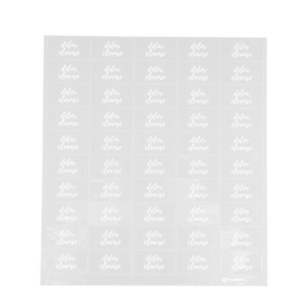 PLASTIC DETOX CLEANSE LABEL - CLEAR WITH WHITE FONT, WATER-RESISTANT