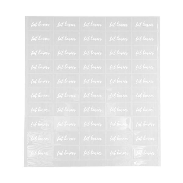 PLASTIC FAT BURNER LABEL - CLEAR WITH WHITE FONT, WATER-RESISTANT