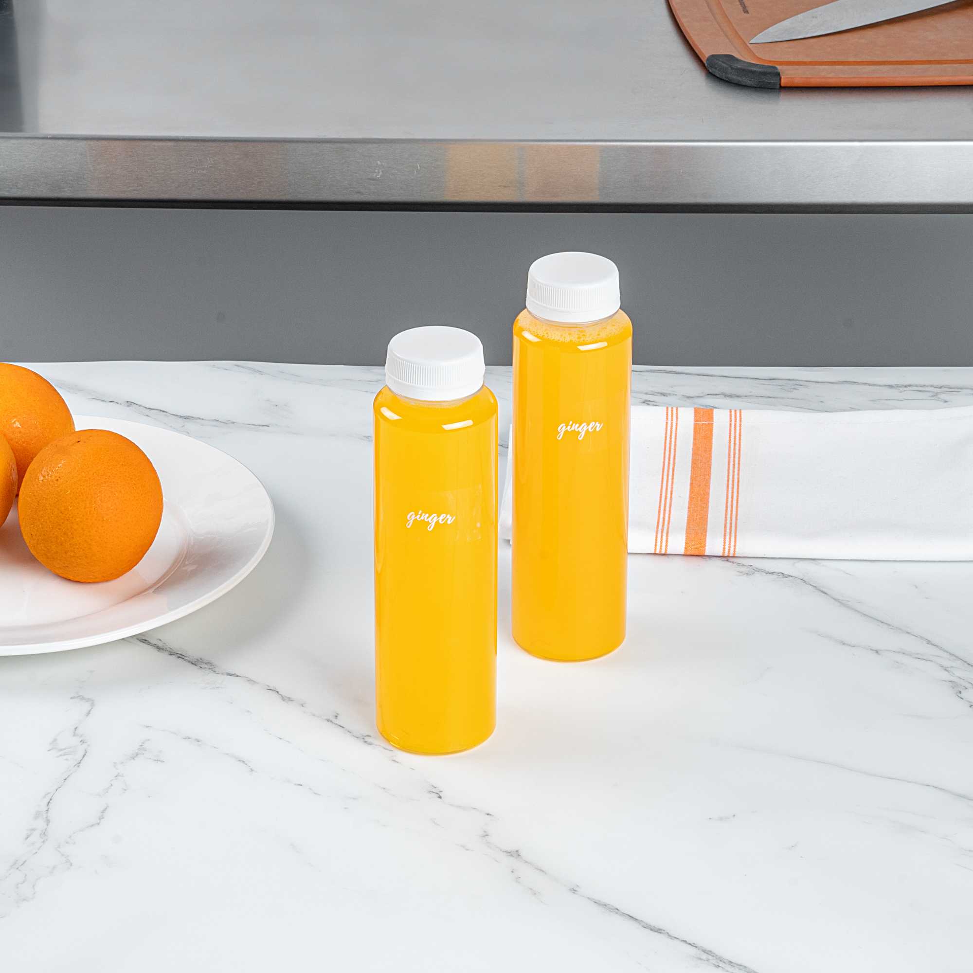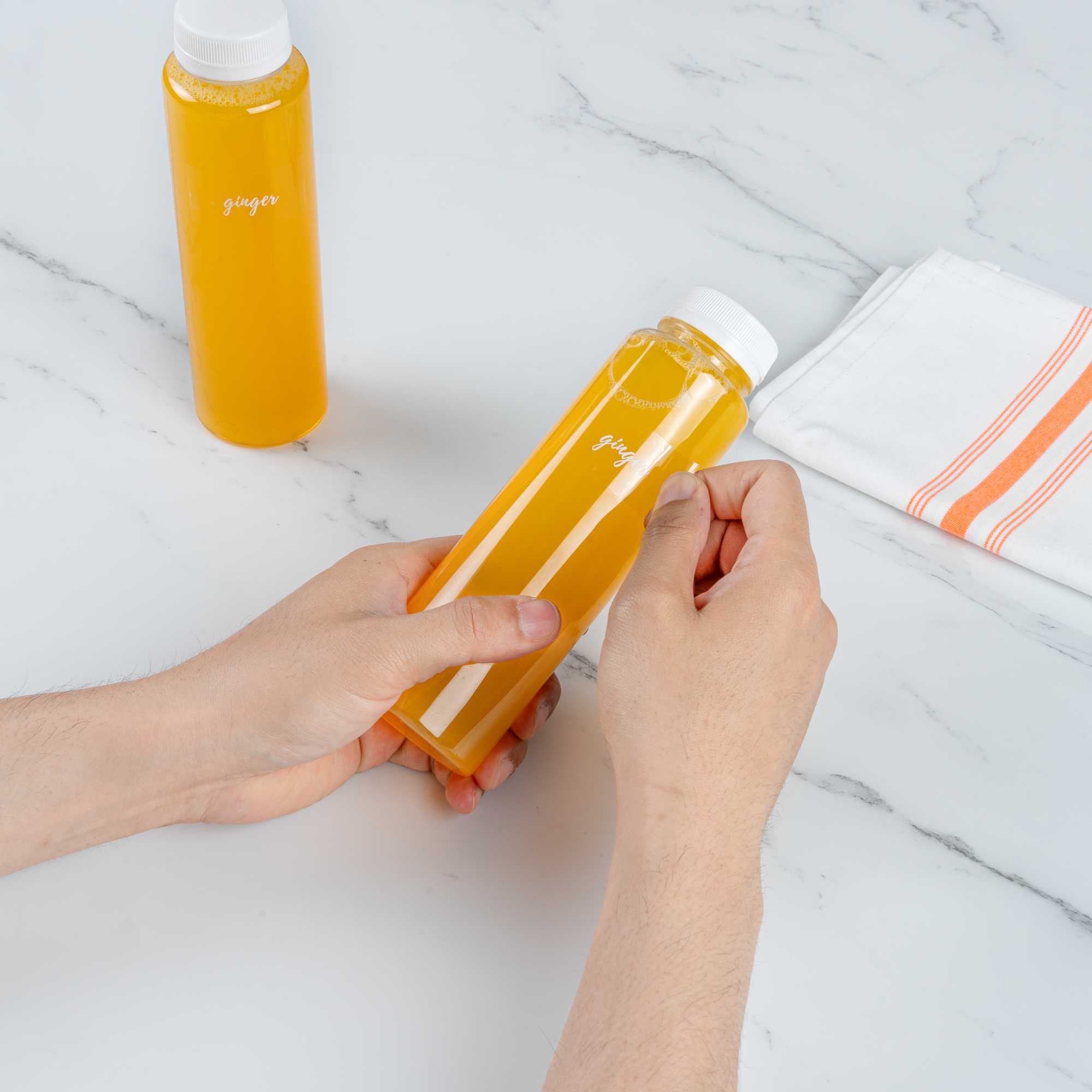 Use our Label Tek Plastic Ginger Labels to make ginger teas or juices easy to identify in grab-and-go displays at your grocery store, hotel, or restaurant. These water-resistant labels are specially designed to hold up to condensation, preventing them from smudging or peeling off chilled juices. Each juice sticker reads "ginger" in a white cursive font that allows guests to quickly identify bottled ginger juices to reduce unnecessary contact with other beverages. With a clear background, these water-resistant stickers create a cohesive appearance on drink pouches while making the colors of ginger teas the center of attention. Plus, they provide bottled drinks with a one-of-a-kind look to eliminate the need for customized labels. Pair these clear labels with our tamper-evident juice bottles and drink pouches for a mess-free way to transport ginger juices. These plastic drink labels come in a sheet, providing employees with a quick and effortless way to label ginger drinks at your juice bar, restaurant, or catered event. Each ginger label measures 2 inches long by 1 inch wide. Shipped in a 100 count box. Tamper-evident juice bottles and drink pouches are available and sold separately. Browse our collection of water-resistant juice labels to organize bottled beverages offered at your foodservice establishment.