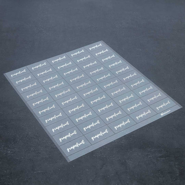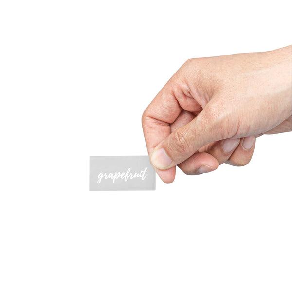 Make refreshing juices or smoothies easy to identify with our Label Tek Plastic Grapefruit Labels. Perfect for placing onto bottles or jars, our food labels have a water-resistant construction that holds up against condensation and prevents stickers from falling off beverages. These water-resistant stickers are designed with a clear background and read "grapefruit" in a white cursive font so you can neatly label grapefruit-flavored beverages for customers. Featuring a strong, sticky adhesive, these food storage labels expertly seal onto the surface of bottles, jars, containers, and more. These food labels arrive in a sheet, making them ideal for easy storage. Coordinate these beverage labels with our collection of tamper-evident juice bottles and drink pouches to securely package grapefruit juices for take out or delivery services. These water-resistant stickers measure 2 inches in length by 1 inch in width. Sold in a 100 count box. Browse our selection of water-resistant labels to find the perfect packaging solution for your take out orders.
