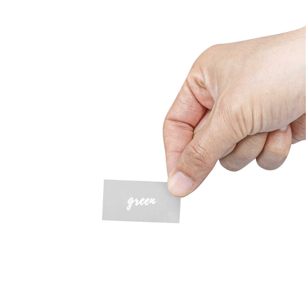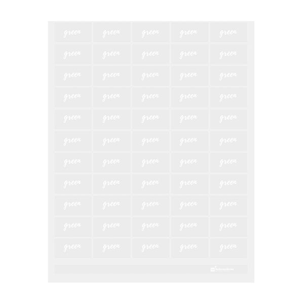 Offer customers healthy beverage options with our Label Tek Plastic Green Labels. These water-resistant labels are designed to stand up to condensation due to warm weather or moisture from commercial refrigerators. Reading "green" in a white, cursive font, these smoothie labels have a clear background to create a seamless look on juice bottles. Plus, they showcase the green color of your beverages to eliminate the need for personalized stickers. These drink bottle name stickers are perfect for labeling green juices or smoothies to prevent confusion and increase order accuracy. Combine these beverage bottle labels with our tamper-evident juice bottles and drink pouches so you can easily transport delivery orders. These water-resistant labels arrive in a sheet for a simple and effortless way to label drink pouches. Each clear label measures 2 inches long by 1 inch wide. Sold in a 100 count box. Tamper-evident juice bottles and drink pouches are available and sold separately. Browse our collection of juice bottle labels to streamline the labeling process at your restaurant.