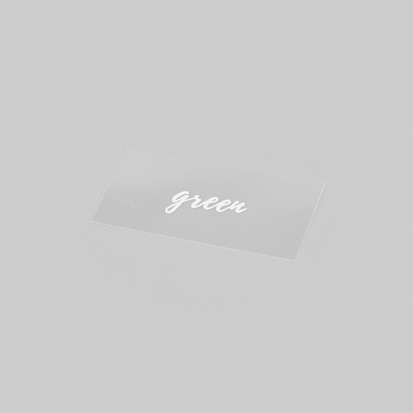 PLASTIC GREEN LABEL - CLEAR WITH WHITE FONT, WATER-RESISTANT
