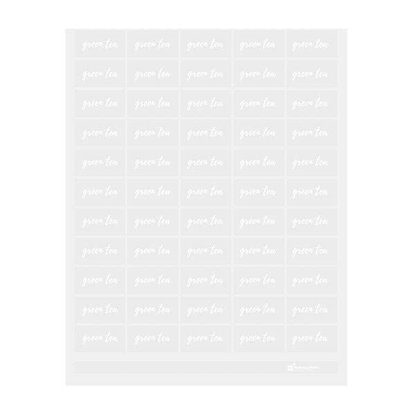 PLASTIC GREEN TEA LABEL - CLEAR WITH WHITE FONT, WATER-RESISTANT