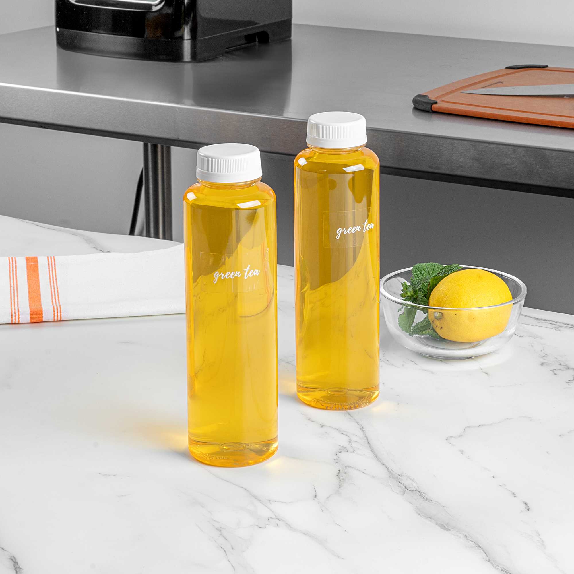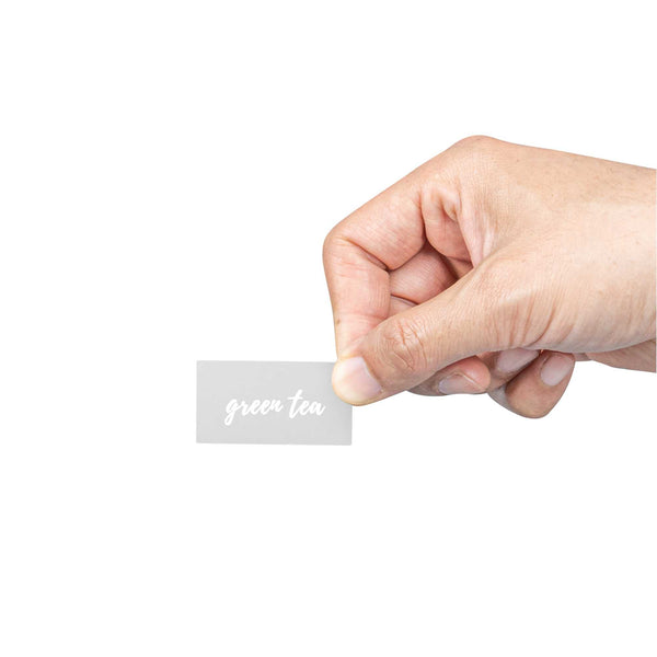 Effortlessly label beverages with our Label Tek Plastic Green Tea Labels. Perfect for placing onto bottled drinks, these drink stickers are water-resistant and expertly hold up against condensation to prevent labels from falling off bottles or containers. These trendy tea labels add a stylish touch to drink packaging and feature a clear background with a white cursive font that reads "green tea" so customers can quickly grab their preferred beverage. Ideal for a secure seal onto surfaces, these transparent labels feature a sticky and strong adhesive. Coordinate these beverage labels with our collection of tamper-evident juice bottles and drink pouches to securely package green tea for take out or delivery services. These drink stickers arrive in a sheet to streamline your employee's packaging process. These tea labels measure 2 inches in length and 1 inch in width. Sold in a 100 count box. Browse our selection of water-resistant labels to find the perfect packaging solution for your take out orders.