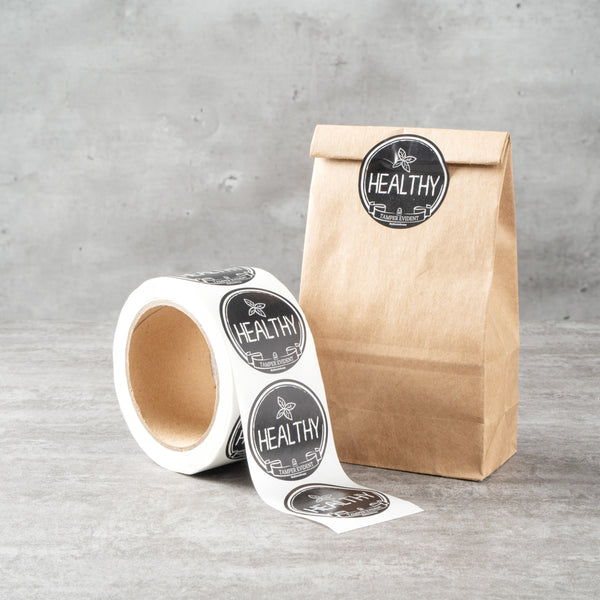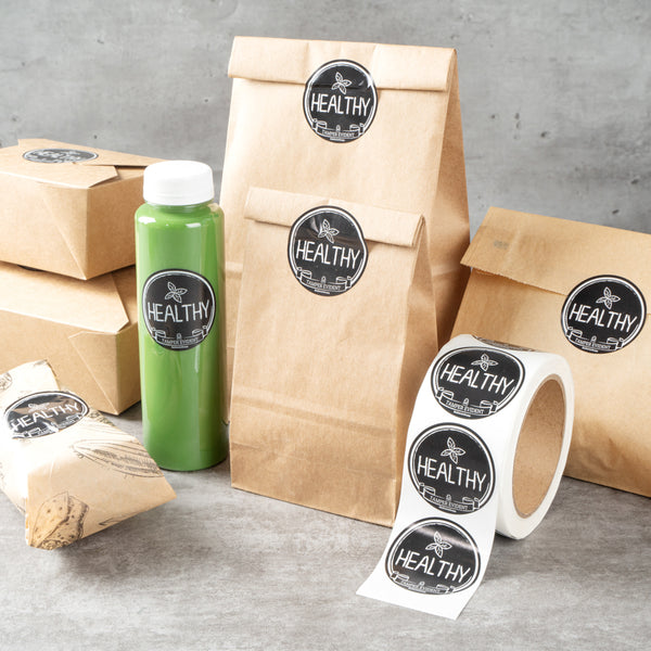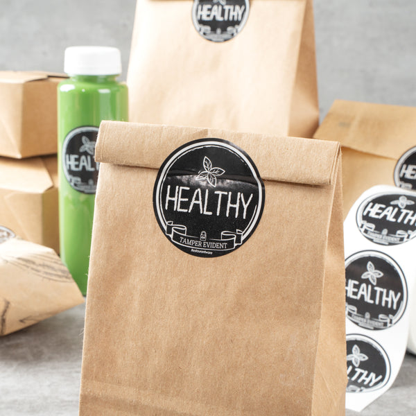 Keep your salads protected with our Label Tek Plastic Healthy Labels. The tamper-evident construction of these tamper stickers leaves a "VOID" message as soon as they are removed from a container. Perfect for leafy green salads, these tamper stickers are decorated with leaf images and a "HEALTHY" message for quick identification to reduce customer contact with multiple food containers. The chalkboard inspired design of these tamper-evident food labels adds style to your packaging for a more cohesive presentation. These void seal stickers have a strong adhesive to securely seal your take out boxes, to-go containers, or delivery bags. As a bonus, their black background and white font effortlessly blend with your restaurant's theme. These tamper labels are wrapped in a roll to streamline your labeling process to avoid confusion while handing out orders. These security seal labels measure 2 inches in diameter. Sold in a 500 count box. Browse our selection of tamper-evident labels to find the perfect packaging solution for your take out orders.