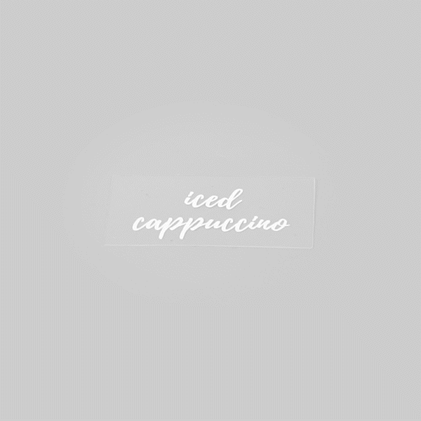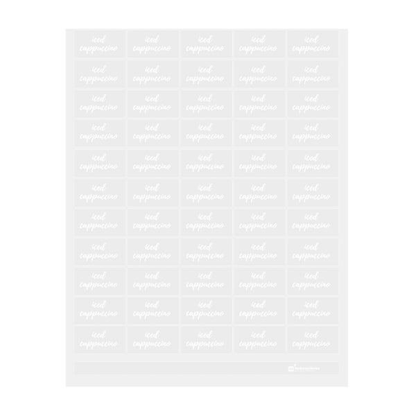 PLASTIC ICED CAPPUCCINO LABEL - CLEAR WITH WHITE FONT, WATER-RESISTANT