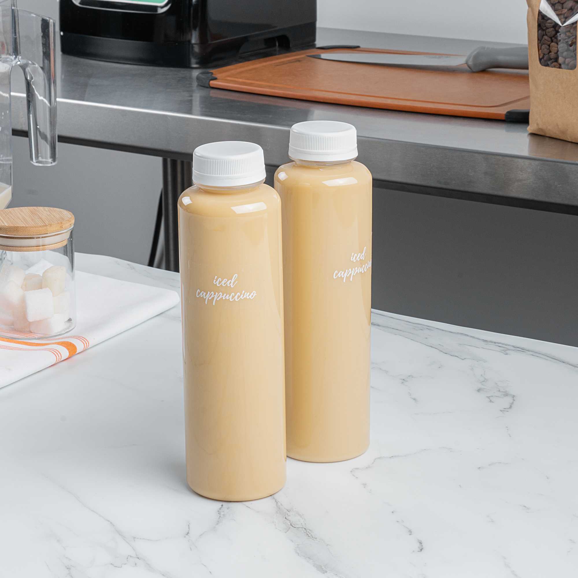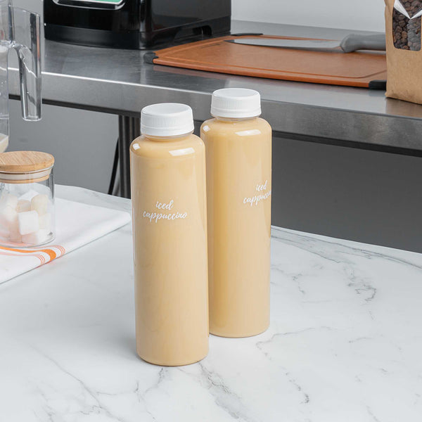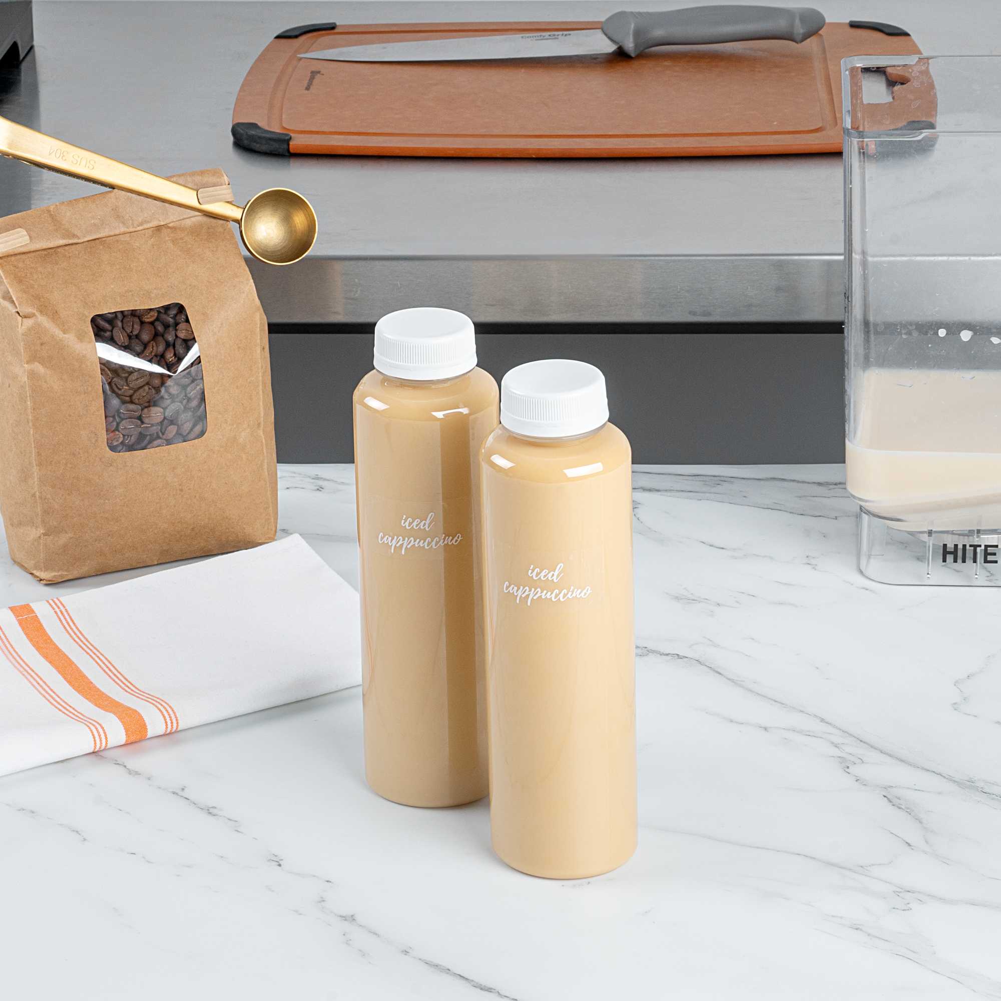 Draw the attention of customers to your bottled cappuccinos by labeling them with our Label Tek Plastic Iced Cappuccino Labels. With a water-resistant design, these durable coffee labels allow you to store labeled beverages in drink displays without worrying about labels smudging or peeling off. These water-resistant labels read "iced cappuccino" in a trendy font to elevate the appearance of grab-and-go cappuccinos while providing guests with a quick way to identify them in drink cases. Featuring a clear background, these cappuccino labels create a seamless look on coffee bottles while showcasing the colors of your bottled cappuccinos. These iced drink stickers bring a one-of-a-kind look to your to-go cappuccinos while eliminating the need for personalized stickers. Safely deliver iced cappuccinos to your customers' homes or to off-site catering events by pairing these coffee stickers with our tamper-evident juice bottles and drink pouches. Measuring 2 inches long by 1 inch wide, these cappuccino stickers arrive in a sheet that allows you to label to-go cappuccinos with ease. Shipped in a 100 count box. Juice bottles and drink pouches are available and sold separately. Browse our collection of drink labels to enhance your establishment's organization and increase order accuracy.
