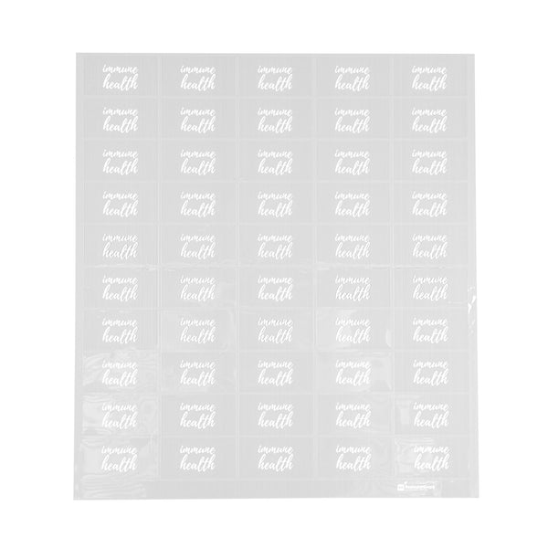 PLASTIC IMMUNE HEALTH LABEL - CLEAR WITH WHITE FONT, WATER-RESISTANT