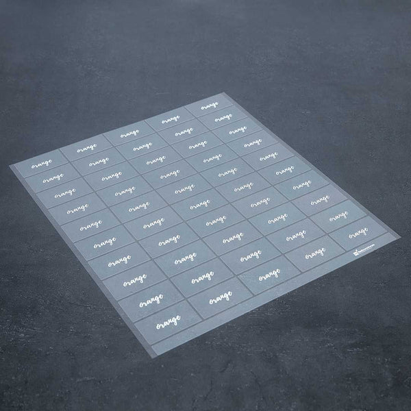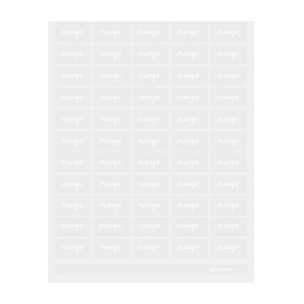PLASTIC ORANGE LABEL - CLEAR WITH WHITE FONT, WATER-RESISTANT