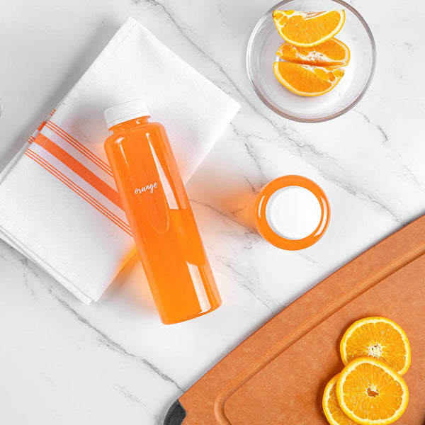 Make fruit juices and smoothies effortless to identify using our Label Tek Plastic Orange Labels. Featuring a water-resistant construction, these juice labels withstand condensation from bottles to stop stickers from peeling off. These juice bottle labels are designed with a clear background and a white cursive font that reads "orange" so that your customers can quickly find their drinks while eliminating direct contact with other containers. These orange stickers have a strong adhesive on the back that expertly sticks onto all kinds of surfaces to ensure that labels don't fall off. Coordinate these beverage labels with our collection of tamper-evident juice bottles and drink pouches to securely package orange juices for take out or delivery services. Perfect for maximizing storage space and streamlining packaging, these juice labels arrive in a sheet. These juice bottle labels measure 2 inches in length and 1 inch in width. Sold in a 100 count box. Browse our selection of water-resistant labels to find the perfect packaging solution for your take out orders.