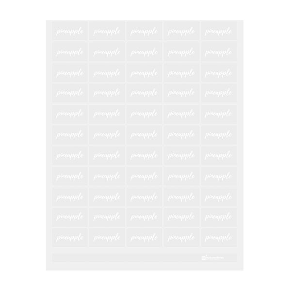 PLASTIC PINEAPPLE LABEL - CLEAR WITH WHITE FONT, WATER-RESISTANT
