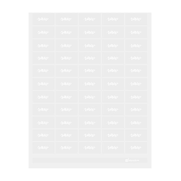 Easily organize and label your fresh and raw drinks with our Label Tek Plastic Raw Labels. With a water-resistant design, these drink labels allow you to store prepackaged drinks in fridges or coolers without worrying about the labels peeling off. These smoothie labels read "raw'' in white cursive font to give your bottled fruit juices a trendy look. Featuring a clear background, these raw labels allow customers to quickly identify raw beverages from other drinks in display cases. Ideal for labeling take out or delivery beverages, these fruit drink labels show off the colors of your multicolored drinks and eliminate the need for customized labels. These beverage labels arrive in a sleeve to provide you with a simple way to label bottled juices. Pair these clear labels with our tamper-evident juice bottles and drink pouches to prevent accidental spills during transport. These plastic labels measure 2 inches long by 1 inch wide. Sold in a 100 count box. Juice bottles and drink pouches are sold separately. Browse our selection of drink labels to effortlessly label bottled drinks.
