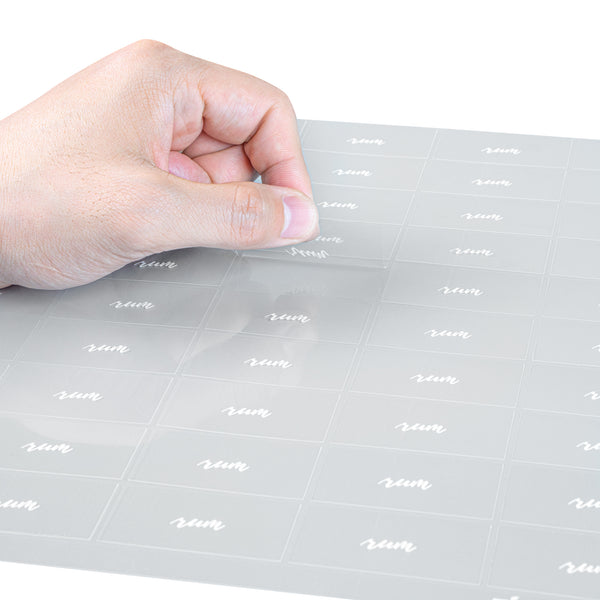 PLASTIC RUM LABEL - CLEAR WITH WHITE FONT, WATER-RESISTANT