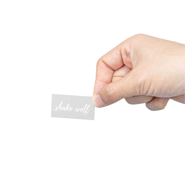 Label Tek Plastic Shake Well Label - Clear with White Font, Water-Resistant - 2