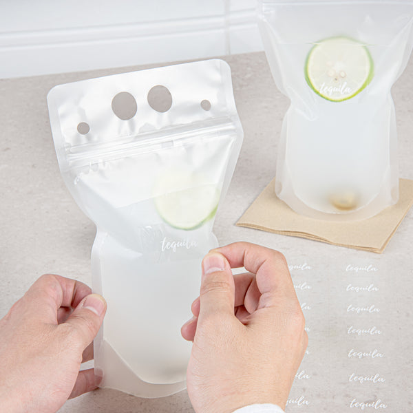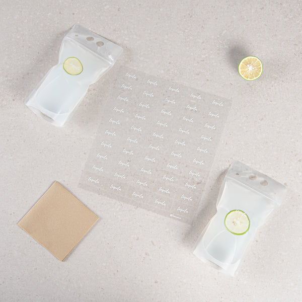 PLASTIC TEQUILA LABEL - CLEAR WITH WHITE FONT, WATER-RESISTANT