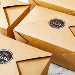 PLASTIC VEGAN LABEL - BLACK WITH WHITE FONT, TAMPER-EVIDENT