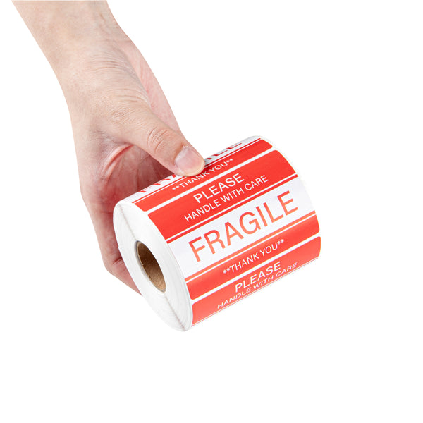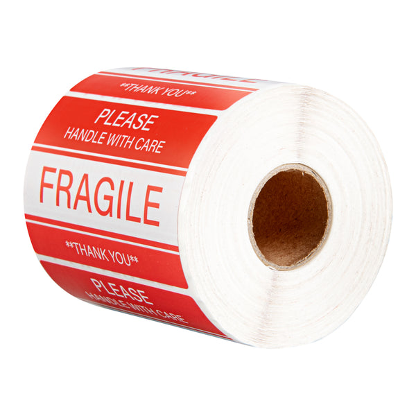 Pack your fragile products by labeling them using our Label Tek Red and White Paper Fragile / Handle with Care Labels. These rectangular labels come in a bright red and white shade, enabling high visibility. Imprinted in large fonts, these labels read "Fragile/Handle with Care," letting your employees and customers know how to handle your glass products. For sustainability, these stickers are made of paper, reducing your carbon footprint. These stickers for packaging have strong adhesives, letting them stick on any surface easily without peeling off. Each sticker measures 3 inches in length by 2 inches in width. Sold in a 500 count roll.