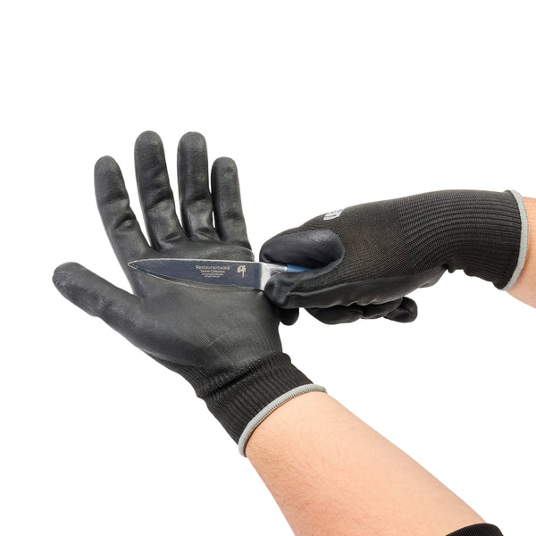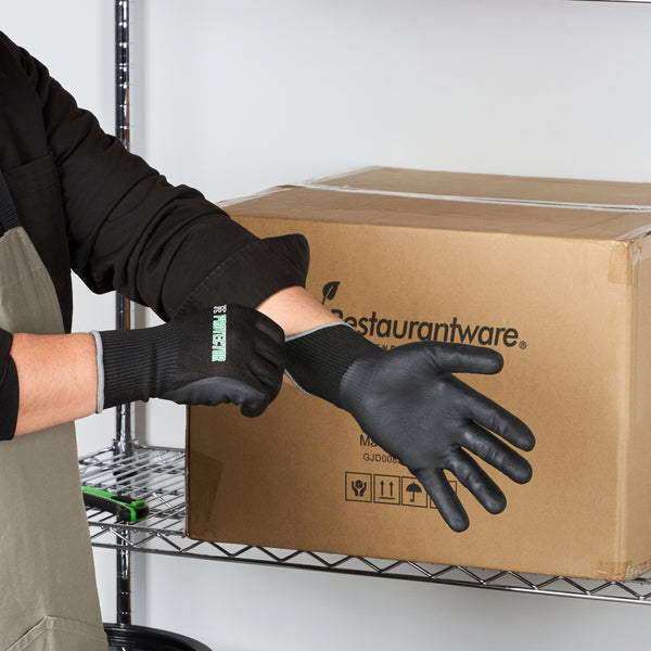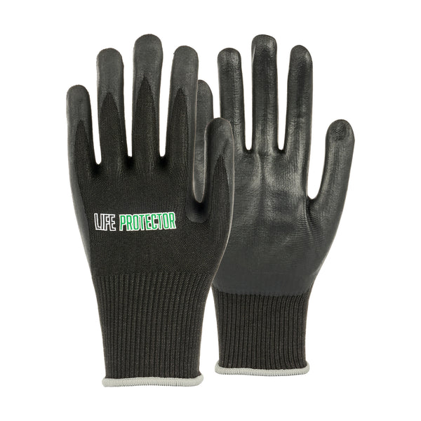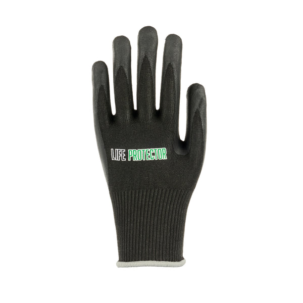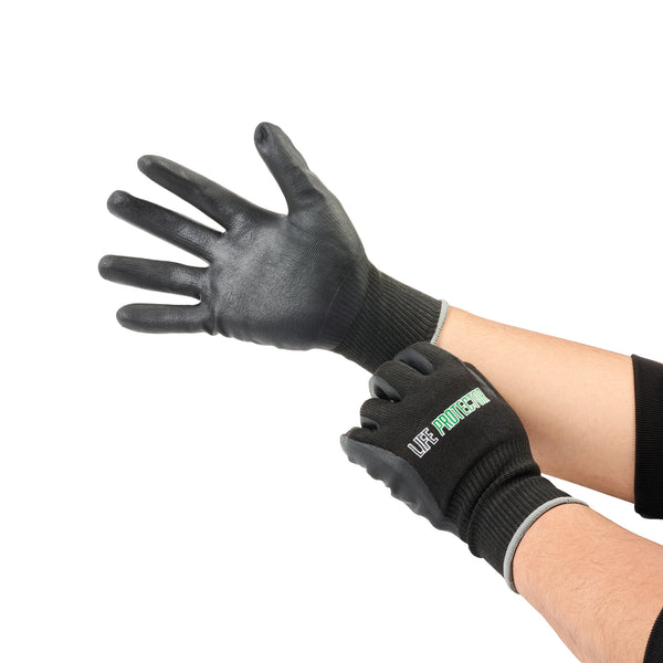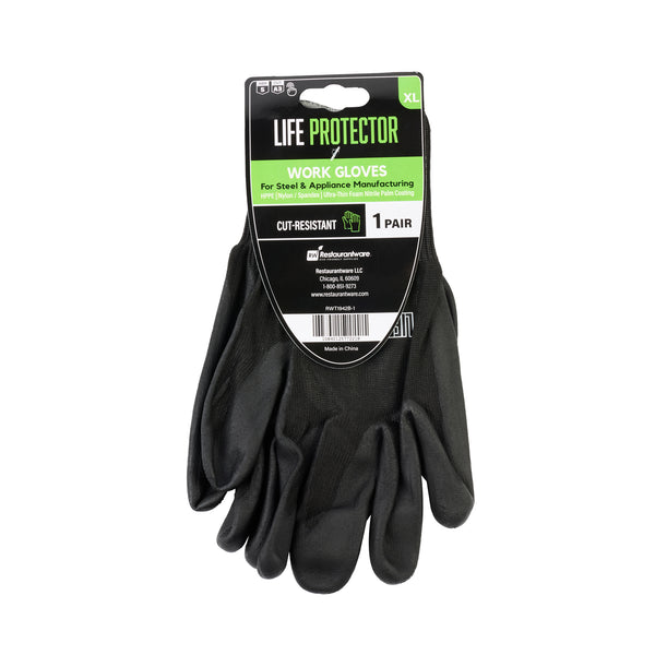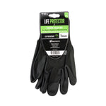 Provide heavy-duty protection while working with our Life Protector Black HPPE Nylon / Spandex Extra Large Work Gloves. These work gloves feature an ultra-thin foam nitrile coating that resists abrasions and tears, ensuring long-lasting use. Suitable for working in various conditions, these hand gloves provide exceptional grip on both dry and wet surfaces. Equipped with HPPE fibers, these protective gloves are cut-resistant and keep your hands safe from sharp edges and blades, making them perfect for steel and appliance manufacturing. With a lining crafted from a blend of nylon and spandex, these black gloves provide a comfortable fit, enhancing hand movement during extended wear. With a 15-gauge thickness, these hand gloves deliver an added layer of protection in tough working conditions. Conveniently hand washable, these mechanic gloves are easy to maintain for long-term use. Designed for a sleek, professional look, these black hand gloves hide dirt and stains, maintaining a clean appearance. Measuring 10.25 inches in length by 4.25 inches in width, these heavy-duty gloves are built for both performance and style. Each order includes 1 pair of extra large work gloves.