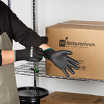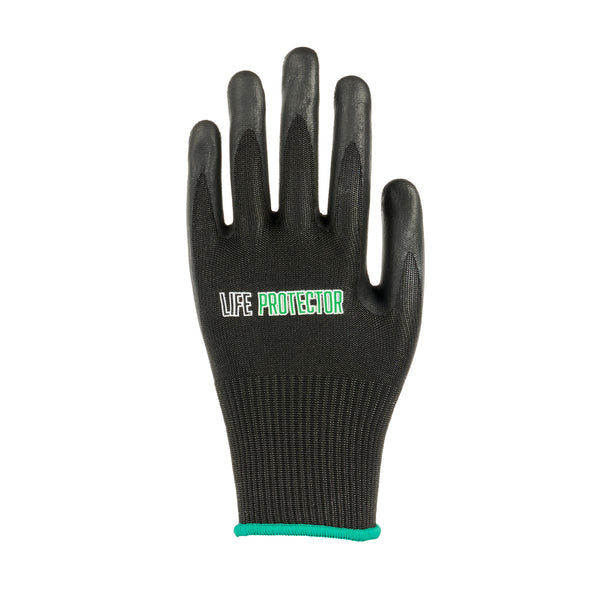 Ensure maximum comfort with our Life Protector Black HPPE Nylon / Spandex Medium Work Gloves. These heavy-duty gloves feature an ultra-thin foam nitrile coating resistant to abrasions and tears for long-lasting use. To ensure you maintain control in various work conditions, these hand gloves offer excellent grip on both dry and wet surfaces. Crafted with HPPE fibers, these protective gloves are cut-resistant and safeguard your hands from sharp edges and blades, making them perfect for safely handling steel and appliance manufacturing. The lining of these black work gloves is made from a blend of nylon and spandex, providing a comfortable fit for improved hand movement during extended wear. Designed with a 15-gauge thickness, these black hand gloves offer an added layer of protection while working in tough conditions. These mechanic gloves are hand washable for effortless upkeep and maintenance. With a sleek black finish, these black gloves present a professional look while effectively hiding dirt and stains. Measuring 9.5 inches in length by 3.75 inches in width, these work gloves fit comfortably for various tasks. Each order includes 1 pair of medium work gloves.