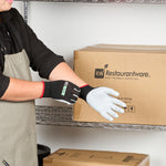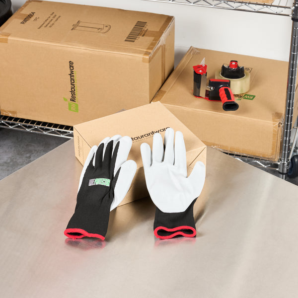 Optimize your work efficiency with our Life Protector Black Nylon Small Work Gloves. Featuring a durable nitrile coating, these heavy-duty gloves prevent oil and grease from making contact with your skin. With innovative foam technology, these breathable black work gloves keep hands cool and prevent sweating during long hours of use. The nylon lining of these protective gloves ensures comfort throughout extended wear. With a 13-gauge thickness, these mechanic gloves provide an added layer of protection in tough working conditions. Ideal for mechanical work, these black hand gloves are perfect for engine repairs, equipment maintenance, and workshop projects. Designed for convenience, these black gloves are hand washable for easy cleaning and upkeep. The sleek black finish of these work gloves helps to conceal dirt and wear, making them an excellent choice for demanding warehouse environments. Measuring 9 inches in length by 3.75 inches in width, these hand gloves offer a snug and secure fit. Each order includes 1 pair of small work gloves.