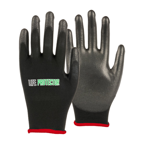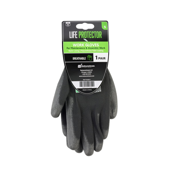 Enhance your work efficiency with our Life Protector Black Nylon Small Work Gloves. These heavy-duty gloves feature a polyurethane palm coating that offers good resistance to abrasions, extending the glove’s life. Designed specifically for maintenance and assembly work, these mechanic gloves provide enhanced grip and dexterity for intricate tasks. The breathable nylon lining of these protective gloves helps keep your hands cool and comfortable during extended wear. With a 13-gauge thickness, these black work gloves offer an added layer of protection while working in tough conditions. These black gloves are hand washable and ensure easy upkeep. The sleek black finish of these hand gloves creates a neat look and helps conceal dirt and wear. Measuring 9 inches in length by 3.75 inches in width, these work gloves are perfectly sized for various tasks. Each order includes 10 pairs of small work gloves.