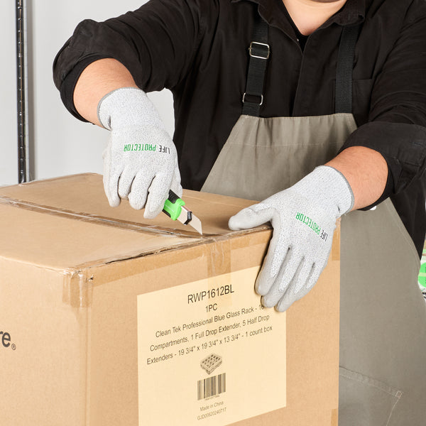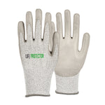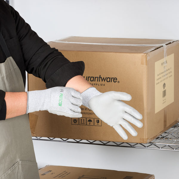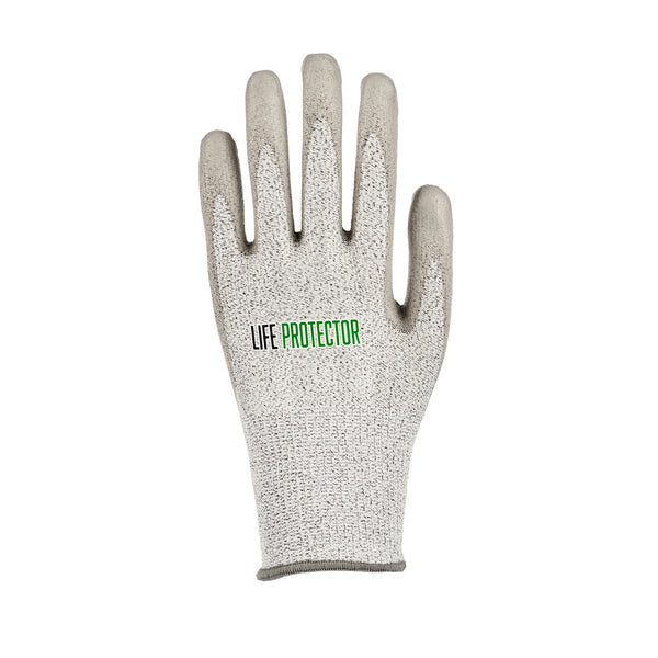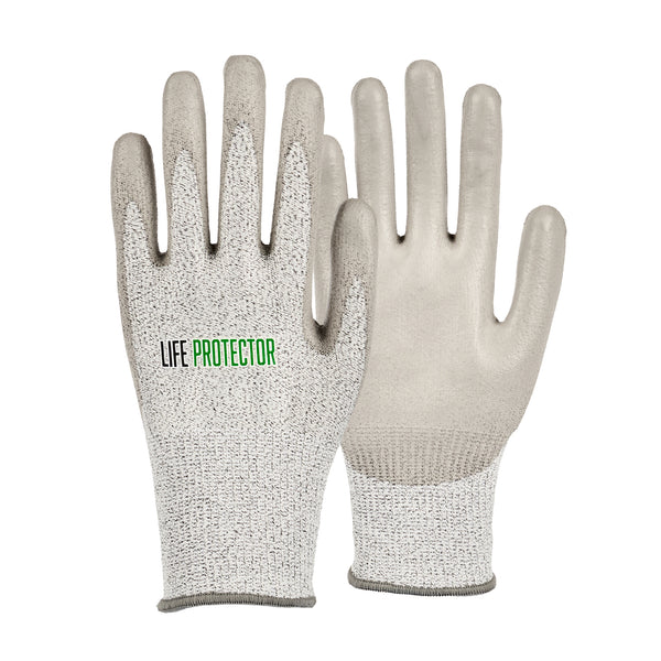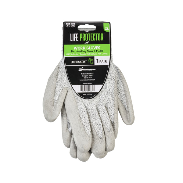 Equip your team with our Life Protector Gray HPPE Polyester / Spandex Extra Large Work Gloves. With a polyurethane coating, these heavy-duty gloves shield your hands from chemicals and corrosive substances, ensuring a safer working environment. The HPPE fibers of these protective gloves are cut-resistant and protect your hands from sharp edges and blades, ideal for safely handling glass or metal sheets. The lining of these mechanic gloves is crafted from a blend of polyester and spandex, offering a comfortable fit for improved hand movement during extended wear. Boasting a 13-gauge thickness, these gray work gloves provide an added layer of protection while working in tough conditions. For easy upkeep, these gray gloves are hand washable for simplified maintenance. The gray finish of these work gloves gives them a sleek, professional look while effectively hiding dirt and stains. Measuring 10.25 inches in length by 4.25 inches in width, these hand gloves are ideally sized for various tasks. Each order includes 1 pair of extra large work gloves.
