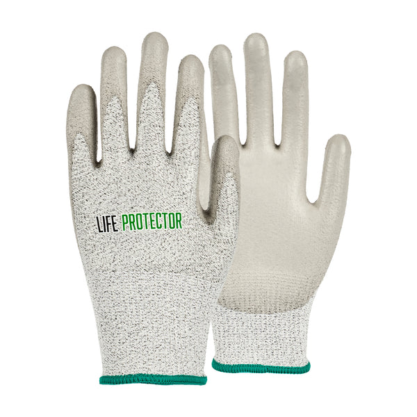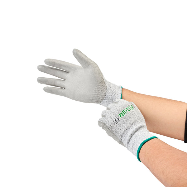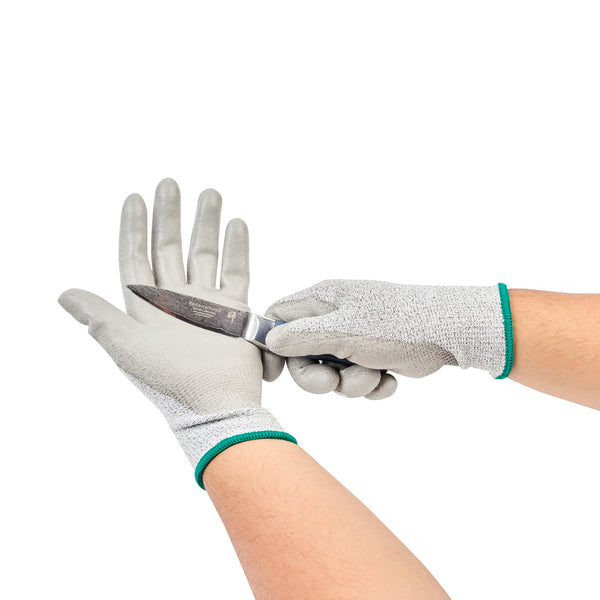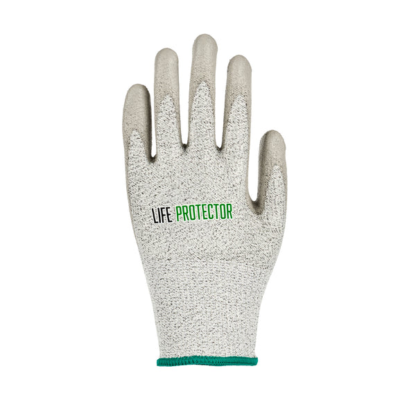 Equip your team with our Life Protector Gray HPPE Polyester / Spandex Medium Work Gloves. These heavy-duty gloves feature a polyurethane coating that shields your hands from chemicals and corrosive substances, ensuring a safer working environment. Made with HPPE fibers, these gray gloves are cut-resistant and provide superior protection from sharp edges and blades, making them ideal for handling glass or metal sheets. The lining in these mechanic gloves is crafted from a blend of polyester and spandex, offering a comfortable fit for improved hand movement during extended wear. Designed with a 13-gauge thickness, these protective gloves add an extra layer of security while working in tough conditions. For easy upkeep, these work gloves are hand washable and ensure a simple cleaning experience. The sleek gray finish of these hand gloves hides dirt and stains, providing a professional look. Measuring 9.5 inches in length by 3.75 inches in width, these gray work gloves offer a perfect fit for various tasks. Each order includes 1 pair of medium work gloves.