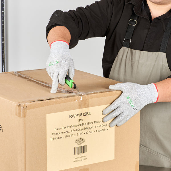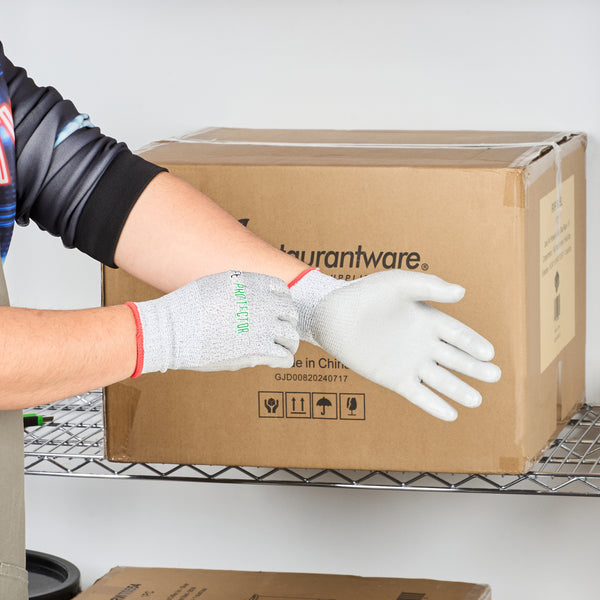 Protect your hands in style and comfort with our Life Protector Gray HPPE Polyester / Spandex Small Work Gloves. These heavy-duty gloves feature a polyurethane coating that shields your hands from chemicals and corrosive substances, ensuring a safer working environment. The HPPE fibers of these hand gloves are cut-resistant and offer superior protection from sharp edges and blades, making them perfect for safely handling glass or metal sheets. Equipped with a lining crafted from a blend of polyester and spandex, these mechanic gloves provide a comfortable fit, allowing for improved hand movement during extended wear. Designed with a 13-gauge thickness, these protective gloves add an additional layer of safety in tough working conditions. These gray work gloves are hand washable for easy upkeep, ensuring a convenient cleaning experience. The sleek gray finish of these work gloves hides dirt and stains, maintaining a professional look. Measuring 9 inches in length by 3.5 inches in width, these gray gloves are designed to fit snugly and securely. Each order includes 1 pair of small work gloves.