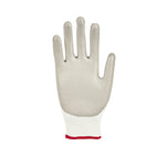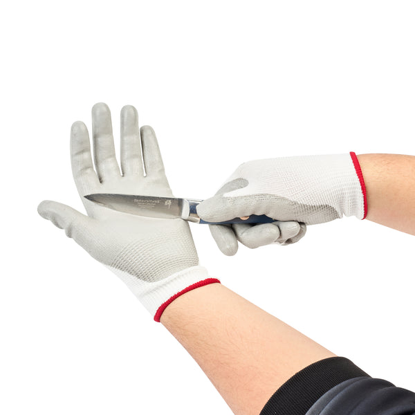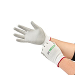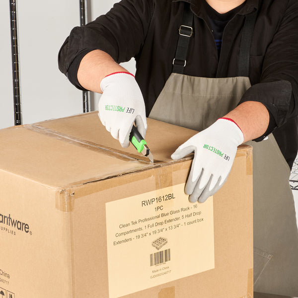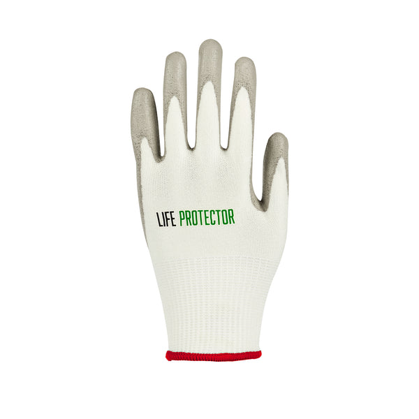 Enhance your team's work wear with our Life Protector White HPPE Polyester / Spandex Small Work Gloves. These heavy-duty gloves feature a polyurethane palm coating that is abrasive-resistant, protecting skin against scrapes and punctures to ensure a safer working environment. With HPPE fibers, these small mechanic gloves are cut-resistant and provide protection from sharp edges and blades. The polyester and spandex lining of these mechanic gloves ensures a comfortable fit for improved hand movement during extended wear. Designed with a 13-gauge thickness, these protective gloves offer an additional layer of security in tough working conditions. These white work gloves are specifically crafted to enhance performance in tasks involving box cutting and strapping, making them essential for efficient workflows. For simplified maintenance, these white gloves are hand washable. The white finish gives these work gloves a neat, professional look. Measuring 9 inches in length by 3.5 inches in width, these durable white gloves are perfectly sized for versatility. Each order includes 10 pairs of small work gloves.