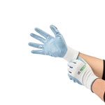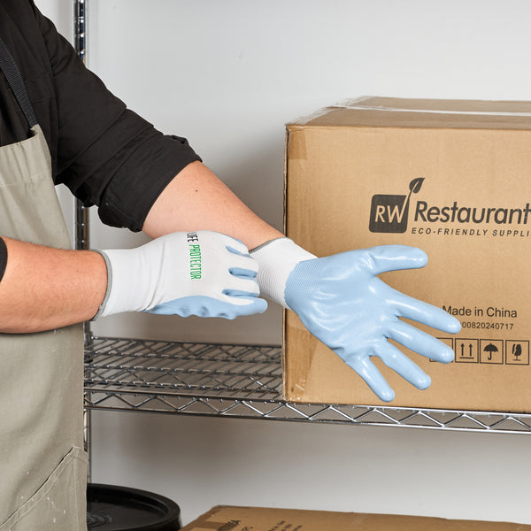 Enhance your work environment with our Life Protector White Nylon Extra Large Work Gloves. These heavy-duty gloves feature a flat nitrile palm coating that is resistant to abrasions and tears. To maintain control in various work environments, these extra large hand gloves provide a superior grip on both dry and wet surfaces. The breathable nylon lining of these protective gloves keeps your hands cool and comfortable during long hours of wear. With a 13-gauge thickness, these hand gloves add an extra layer of protection for tackling tough tasks. Ideal for handling small parts, these mechanic gloves offer fine grip and dexterity, perfect for detailed assembly and repair work. These white gloves are hand washable, making upkeep and maintenance a breeze. Featuring a crisp, white color, these work gloves makes your appearance neat and professional. Measuring 10.25 inches in length by 4.5 inches in width, these white work gloves are designed for optimal performance in various work conditions. Each order includes 10 pairs of extra large work gloves.