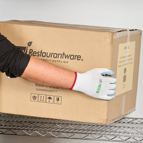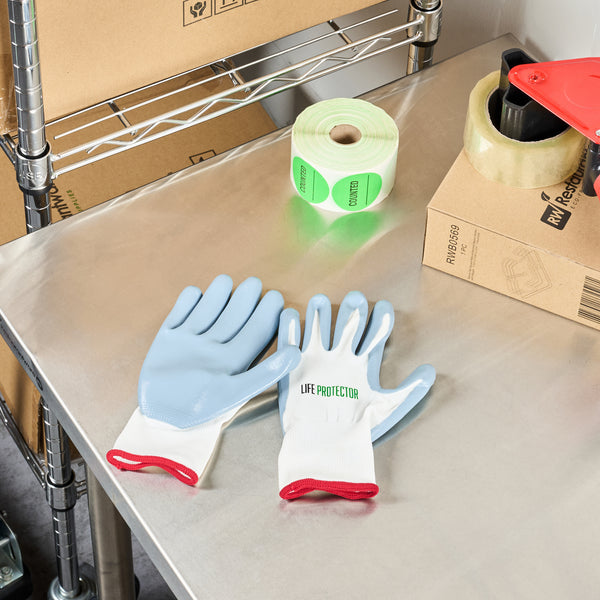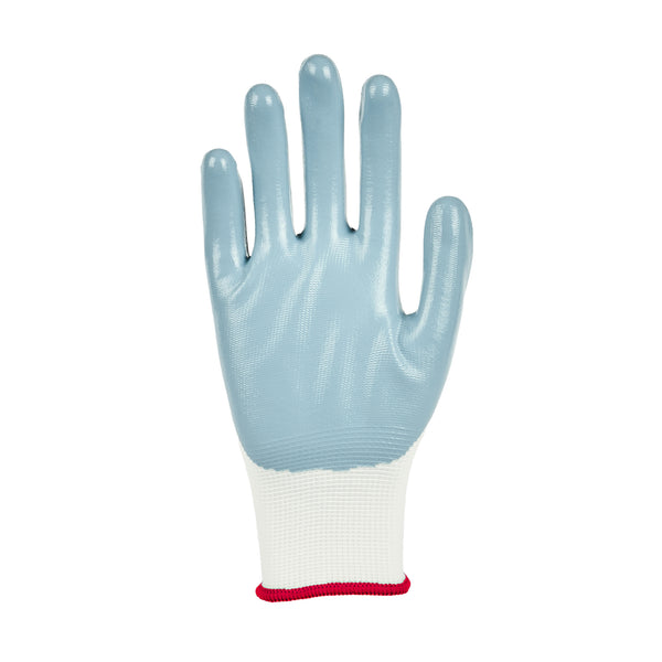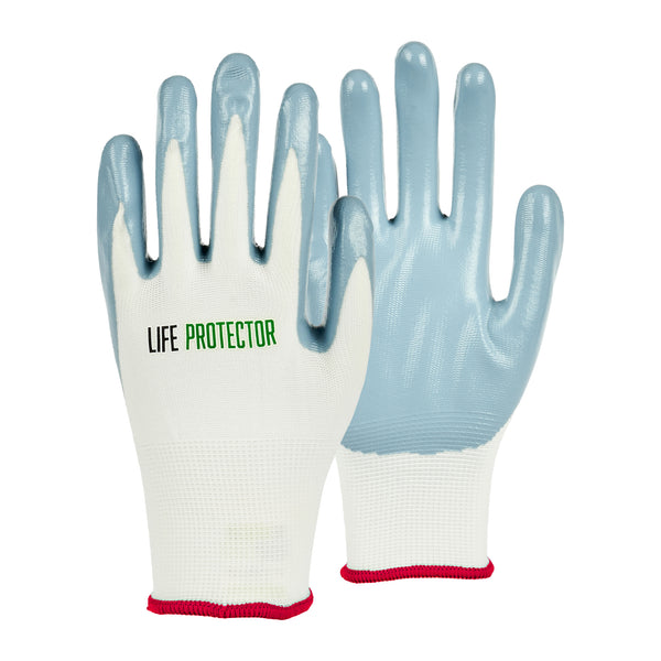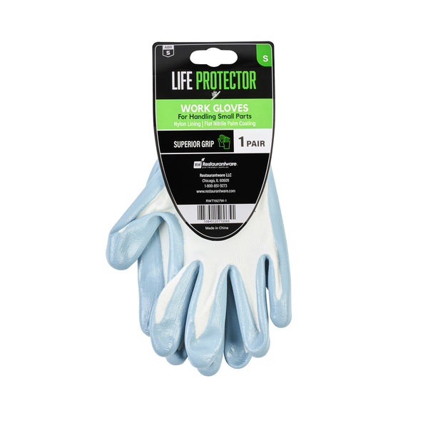 Equip your team with our Life Protector White Nylon Small Work Gloves. These heavy-duty gloves feature a flat nitrile palm coating, making them resistant to abrasions and tears. Designed with a superior grip, these white hand gloves are suitable for working on both dry and wet surfaces. Crafted with a breathable nylon lining, these protective gloves ensure your hands remain cool and comfortable during extended periods of wear. The 13-gauge thickness of these mechanic gloves offers an added layer of protection, making them perfect for tough working conditions. Designed for handling small parts, these white work gloves boast fine grip and dexterity, ideal for detailed assembly and repair work. For easy upkeep and maintenance, these white gloves are hand washable. The crisp white color of these work gloves lends a neat and stylish look to your workwear. These hand gloves measure 9 inches in length by 3.75 inches in width, providing a snug and secure fit for various hand sizes. Each order includes 1 pair of small work gloves.