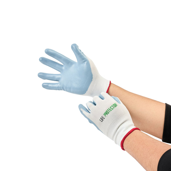 Equip your team with our Life Protector White Nylon Small Work Gloves. These heavy-duty gloves feature a flat nitrile palm coating, making them resistant to abrasions and tears. Designed with a superior grip, these white hand gloves are suitable for working on both dry and wet surfaces. Crafted with a breathable nylon lining, these protective gloves ensure your hands remain cool and comfortable during extended periods of wear. The 13-gauge thickness of these mechanic gloves offers an added layer of protection, making them perfect for tough working conditions. Designed for handling small parts, these white work gloves boast fine grip and dexterity, ideal for detailed assembly and repair work. For easy upkeep and maintenance, these white gloves are hand washable. The crisp white color of these work gloves lends a neat and stylish look to your workwear. These hand gloves measure 9 inches in length by 3.75 inches in width, providing a snug and secure fit for various hand sizes. Each order includes 10 pairs of small work gloves.
