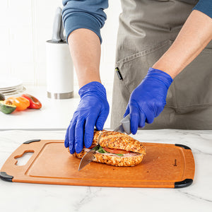 Constructed from nitrile, these serving gloves are food-grade and comply with federal regulations. You won’t have to worry about unwanted substances leeching into food while cooking or prepping.