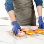 Constructed from nitrile, these serving gloves are food-grade and comply with federal regulations. You won’t have to worry about unwanted substances leeching into food while cooking or prepping.