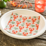 Complement the catch-of-the-day with our Luxenap Gray Paper Cocktail Napkins. These decorative cocktail napkins have images of red lobsters and sea-green coral against a gray background to add a charming, nautical touch to your sea-food plates or shrimp cocktails. Their images are printed with premium ink, making them perfect for handing out savoury crab cakes or scallops. Constructed from premium paper, these stylish beverage napkins have 3 plies, making them thick enough to absorb liquid from cold beverages. The textured pattern on the edges of these paper cocktail napkins add a touch of elegance to your ocean-themed party or any other special occasion. Featuring a cotton-like feel, these party cocktail napkins are silky smooth and soft enough to use on your face. Ideal for a large gathering, these 3-ply napkins are disposable for a quick and hassle-free cleanup. These square napkins measure 13 inches long when unfolded and 6.5 inches long when folded. Please note: Each shipment contains 20 Maine Lobster napkins. Napkins with coordinating designs are available and sold separately: RWA0712 and RWA0713.