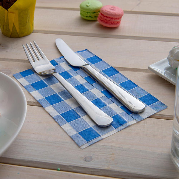 Forget about boring white paper napkins! Featuring an energizing blue and white gingham design, these printed paper napkins are an excellent option for trendy cafes and popular food trucks. Their 1-ply paper construction shows customers that you care about the environment, while their embossed diamond detailing provides a subtle touch of luxury. Conveniently time-saving and hassle-free, these blue and white napkins arrive pre-folded in 6.5-inch by 4.7-inch rectangles. When unfolded, these napkins measure 7 inches by 13.5 inches, a perfect size for comfortably covering your customers' laps. These paper party napkins will arrive in a 100 count box.
