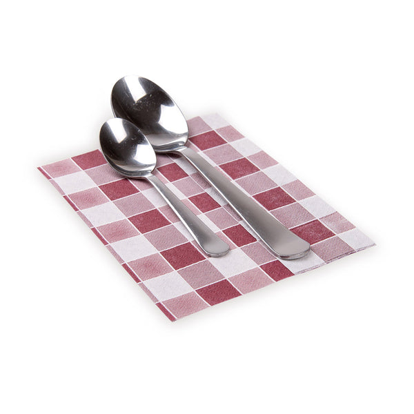Cheery and checkered, these Bordeaux Picnic Print Luxenap napkins are a welcome addition to backyard barbeques and bustling bistros. Their richly hued burgundy pattern gives a unique twist to traditional plaid paper napkins, while their embossed diamond detailing brings a subtle touch of sophistication to your tables and countertops. Made from 1-ply paper, these white and red napkins show your customers that you and your establishment care about the environment. Each of these stylish paper napkins measures 7 inches by 13.5 inches unfolded, a size that covers customers' laps nicely -- without feeling burdensome. To make your prep quick and easy, these disposable napkins arrive conveniently folded in 4.7-inch by 6.5-inch rectangles. We offer these paper napkins wholesale in a 7,000 count box.