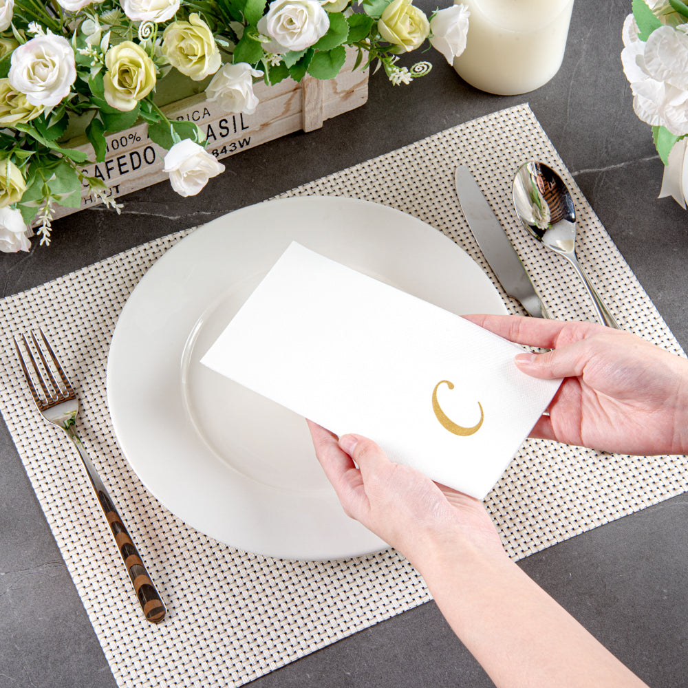 Elevate your dining experience with sophisticated table accessories. Luxenap Luxury Touch Disposable Napkins provide a linen-feel that serves as a luxurious alternative to traditional paper towels, making them perfect for upscale dining establishments. Crafted from premium air-laid paper, these disposable napkins boast exceptional absorbency, efficiently tackling spills and maintaining a clean dining area. The elegant gold lettering adds a personalized and sophisticated touch to any table setting, enhancing guest experiences. Measuring 15.75 inches by 7.87 inches, these biodegradable napkins are not only functional but also environmentally friendly, aligning with sustainability goals. Their versatility extends to being compostable, cold food friendly, and suitable for use with hot food, making them a reliable choice for any meal service. Invest in these air-laid paper napkins to impress your guests and streamline your operations. Each order includes 50 Luxenap Luxury Touch Disposable Napkins.