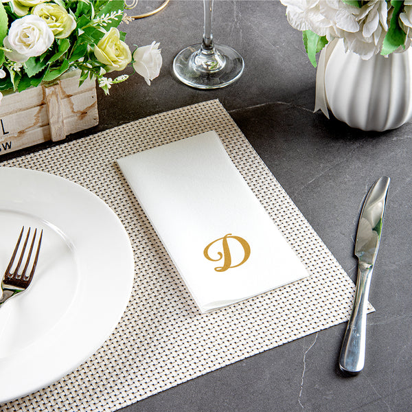 Elevate your dining experience with exquisite, linen-feel napkins. Luxenap Linen-Feel Napkins offer the perfect blend of sophistication and practicality, featuring an impressive size of 15.75 inches by 7.9 inches. Crafted from premium air-laid paper, these personalized napkins provide a luxurious alternative to conventional options, ensuring superior absorbency for effectively tackling spills. Elegant gold lettering adds a layer of elegance, making them ideal for upscale events or restaurants looking to add a personalized touch to their table settings. These disposable napkins are not only biodegradable and compostable but also freezer-safe, making them versatile for any foodservice environment. Trust these napkins to enhance guest experience while maintaining operational efficiency. Each order includes 50 Luxenap Linen-Feel Napkins.
