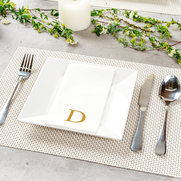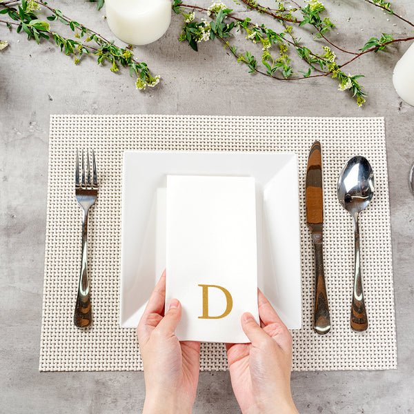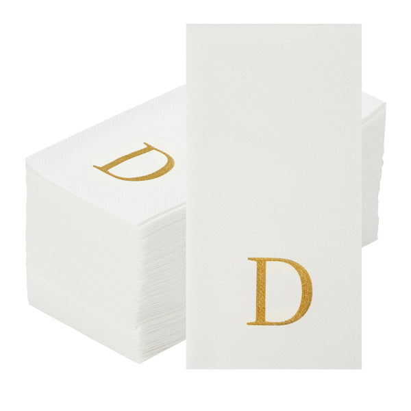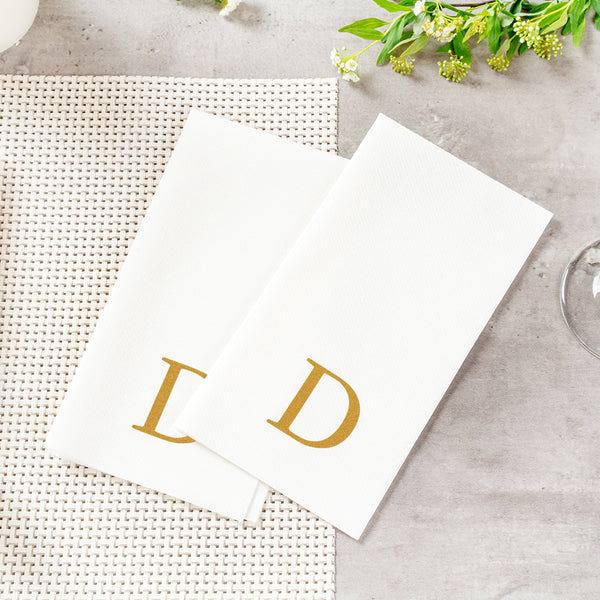 GOLD LETTER D PAPER LINEN-FEEL GUEST TOWEL/NAPKIN - SANS SERIF FONT