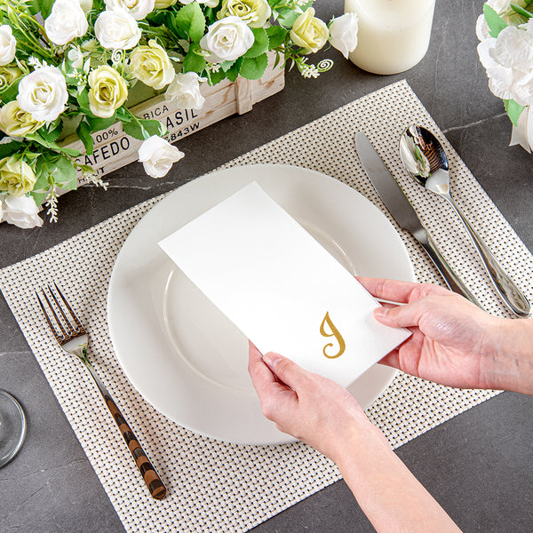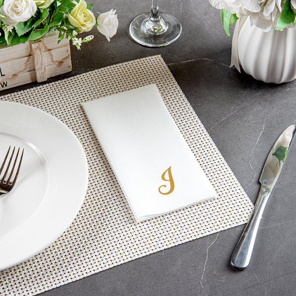 Elevate your dining experience with luxurious disposable napkins. Luxenap Linen-Feel Disposable Napkins offer a luxurious alternative to conventional paper towels, making them perfect for upscale dining environments. Crafted from premium air-laid paper, these linen-feel napkins feature exceptional absorbency to quickly tackle spills in bustling kitchens. The elegant gold lettering adds a sophisticated touch to table settings, enhancing the ambiance of any event. Measuring 15.75 inches by 7.87 inches, these napkins provide ample coverage for guests while maintaining an air of elegance. Made from biodegradable and compostable paper, they align with environmentally conscious operations. Incorporating these gold printed napkins into your service not only ensures functionality but also adds a touch of class. Each order includes 50 Luxenap Linen-Feel Disposable Napkins.