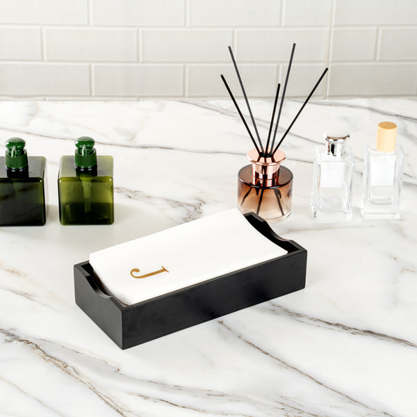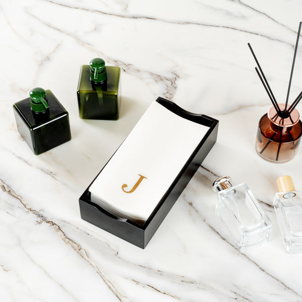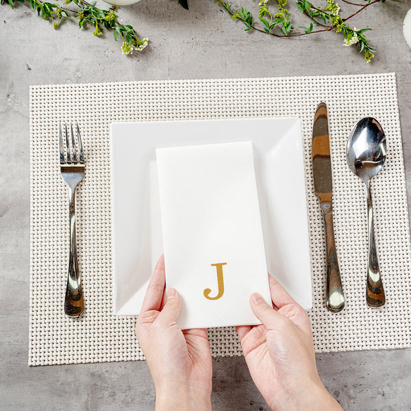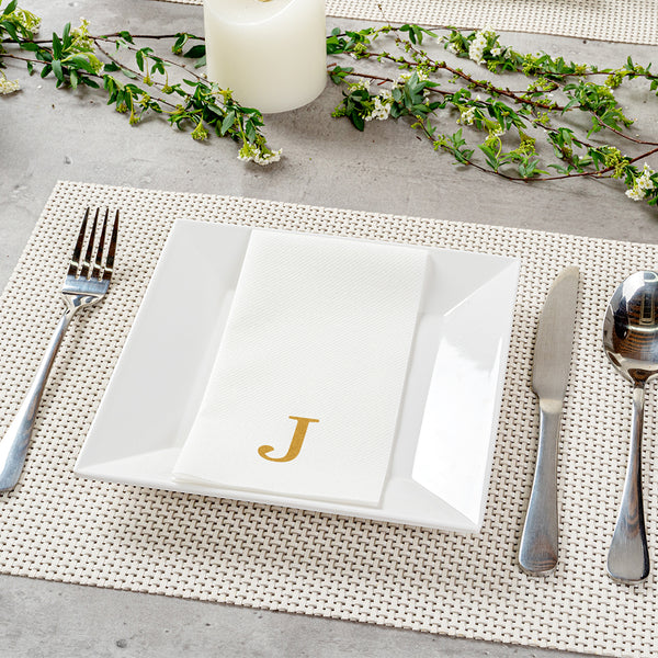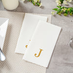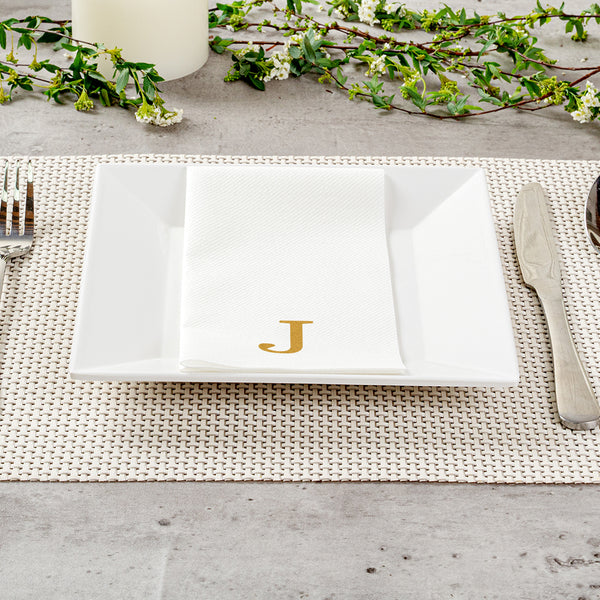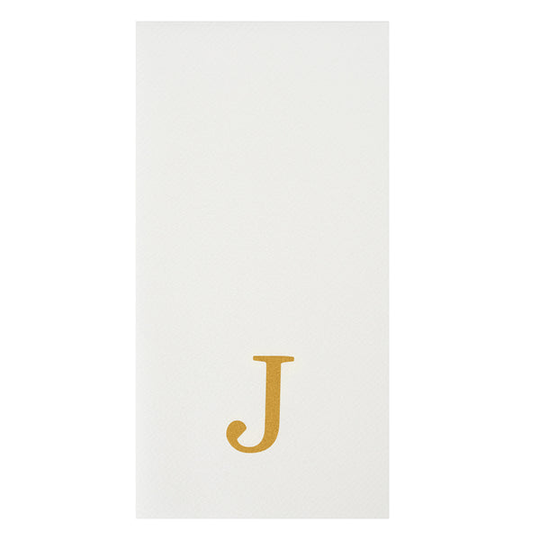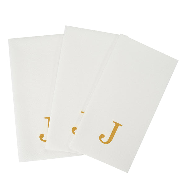 GOLD LETTER J PAPER LINEN-FEEL GUEST TOWEL/NAPKIN - SANS SERIF FONT