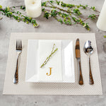 Elevate your dining experience with personalized elegance and practicality. The Luxenap Rectangle Gold Letter J White Paper Linen-Feel Guest Towel / Napkin offers a soft, linen-like feel due to its premium air-laid paper construction, ensuring your guests enjoy unmatched comfort and sophistication. The luxurious gold letter "J" design adds a personalized, sophisticated touch to table settings, making it ideal for upscale restaurants and catering events. With airlaid texture, this airlaid napkin enhances absorption to keep tables clean and mess-free. Measuring 15.75 inches by 7.87 inches, its generous dimensions provide ample coverage, while its compact folded size simplifies storage and inventory management. This disposable napkin’s biodegradable nature ensures effortless cleanup, saving time and labor costs across various dining scenarios. Transform any occasion with these versatile napkins, perfect for weddings or formal events. Sold in a 50 count box.