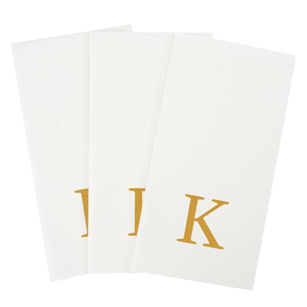 GOLD LETTER K PAPER LINEN-FEEL GUEST TOWEL/NAPKIN - SANS SERIF FONT