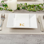 Enhance your dining experience with elegant, disposable napkins. Luxenap Rectangle Gold Letter K White Paper Linen-Feel Guest Towel / Napkins offer a plush, linen-like texture thanks to their premium air-laid paper construction, ensuring guests enjoy the comfort of a cloth napkin without the inconvenience of laundering. The sophisticated gold ‘K’ monogram adds a personalized touch to table settings, making these linen-feel napkins ideal for upscale restaurants and special events. With generous dimensions of 15.75 inches by 7.87 inches, these napkins provide ample coverage and superior absorbency to effectively manage spills, ensuring a clean and polished presentation. Their compact folded size ensures efficient storage, streamlining operations in busy foodservice environments. The disposable design of these napkins allows for quick cleanup, perfect for high-volume events and catering services. Sold in a 50 count box.