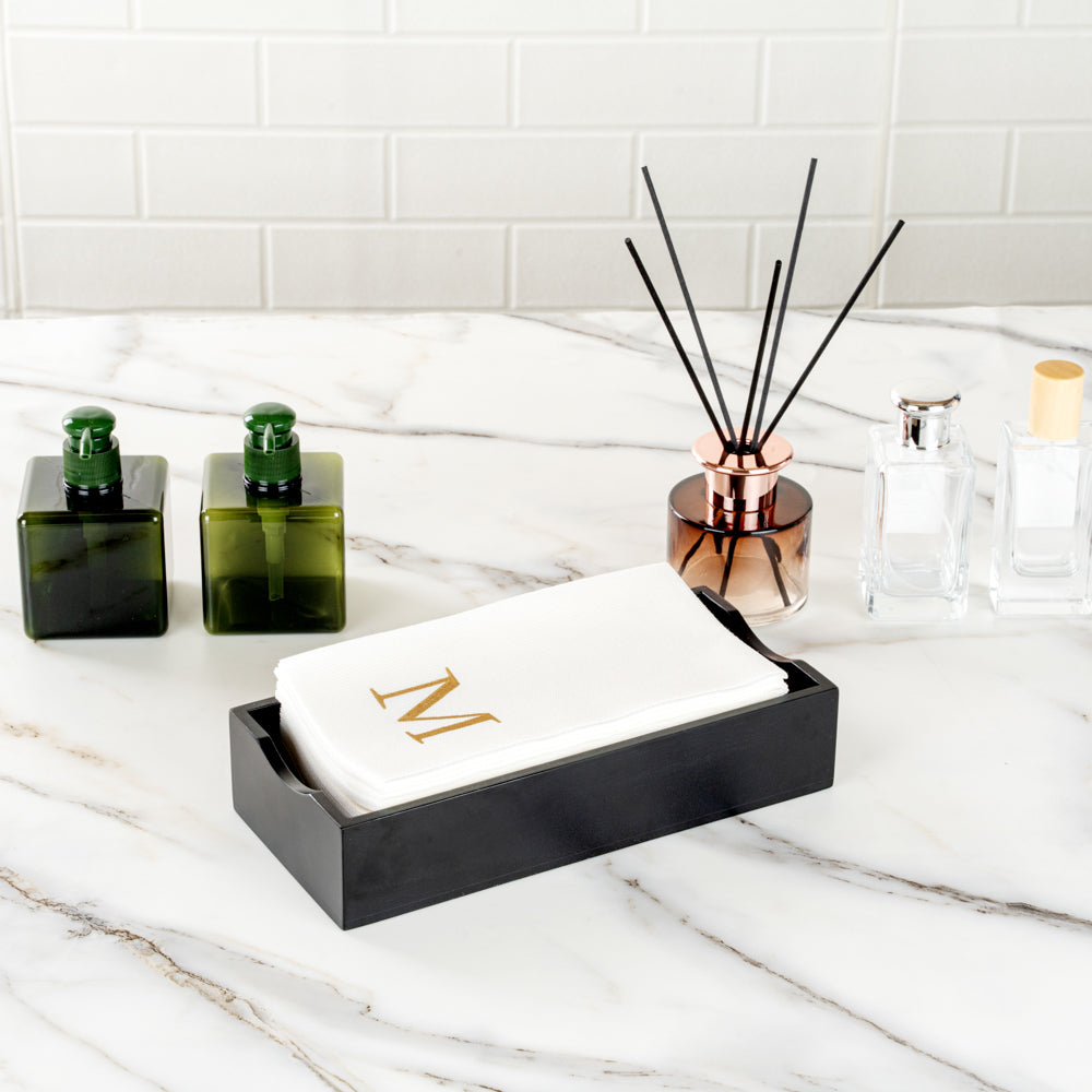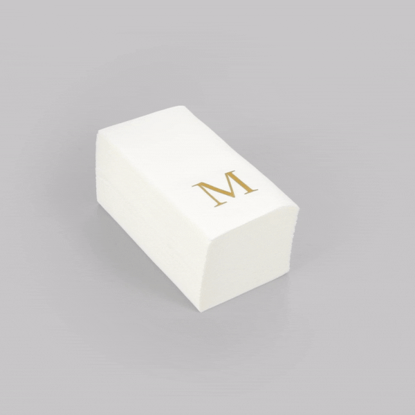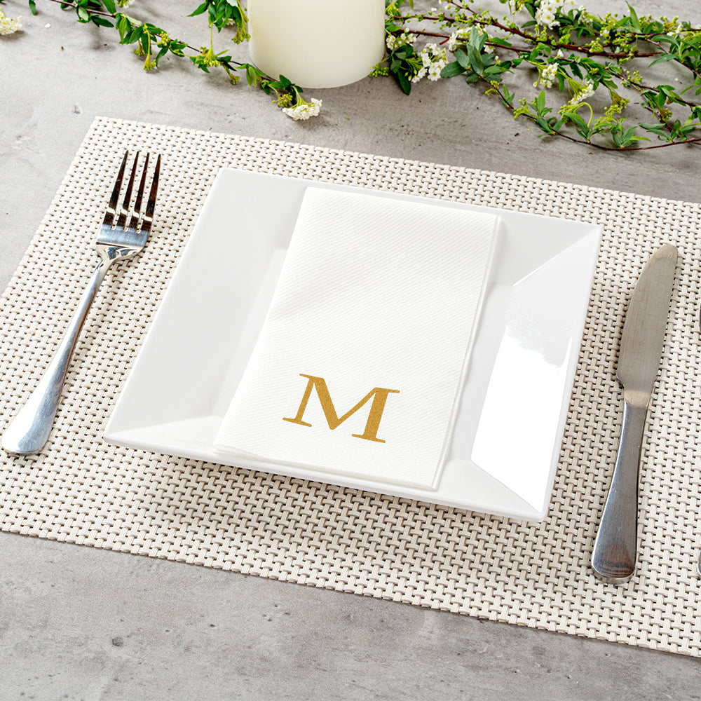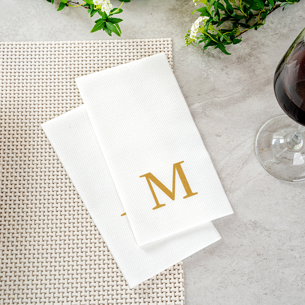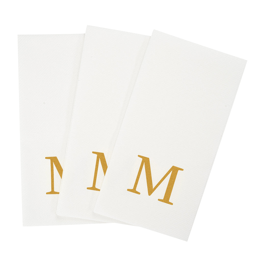 GOLD LETTER M PAPER LINEN-FEEL GUEST TOWEL/NAPKIN - SANS SERIF FONT